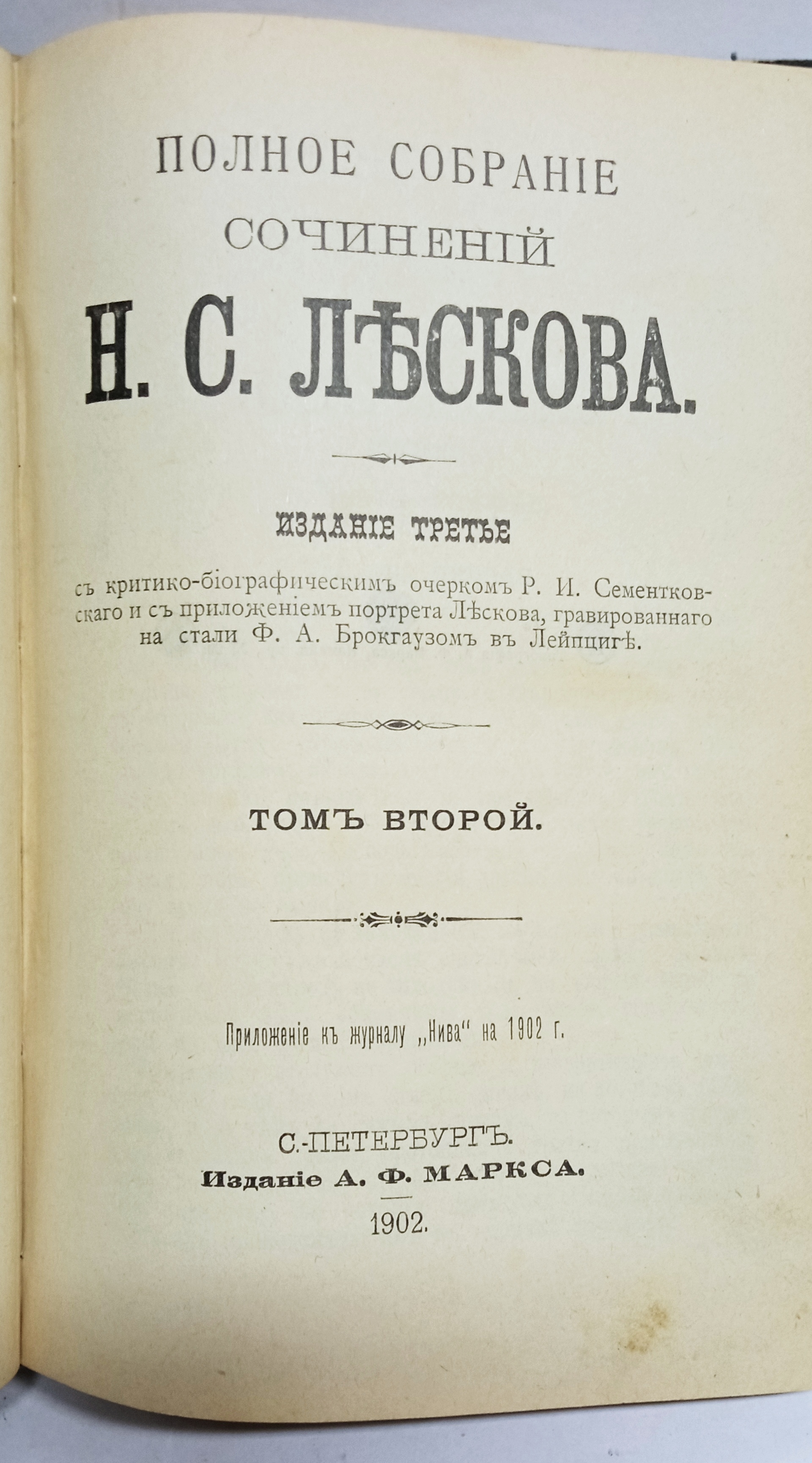 Книга Лесков Н.С собрание сочинений том № 1,2,3 в одной книге (1902 г. )