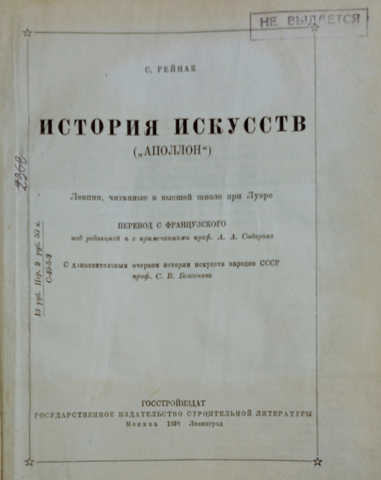 Книга С. Рейнак ИСТОРИЯ ИСКУССТВ (1938 г. )