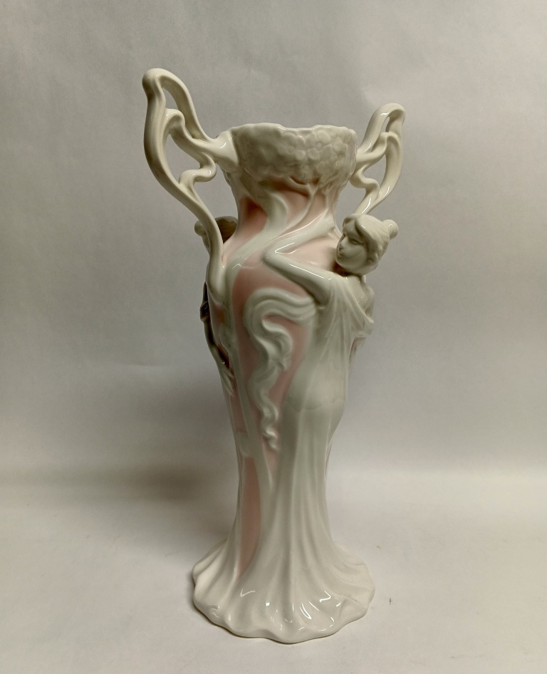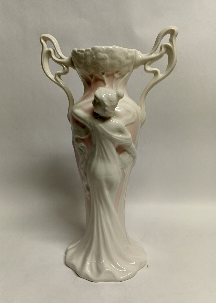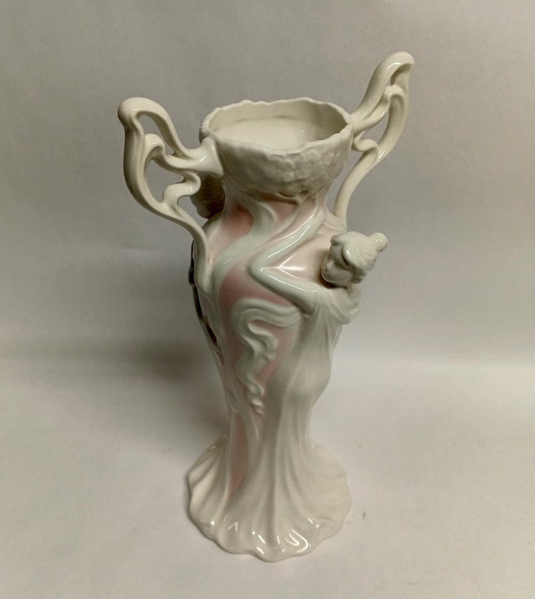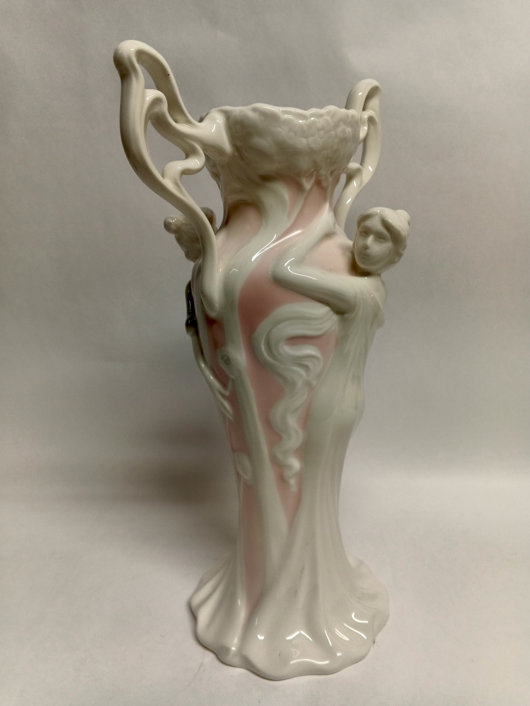 Ваза выполнена в стиле ар-нуво (модерн), о чем свидетельствуют плавные изогнутые линии и органические формы.