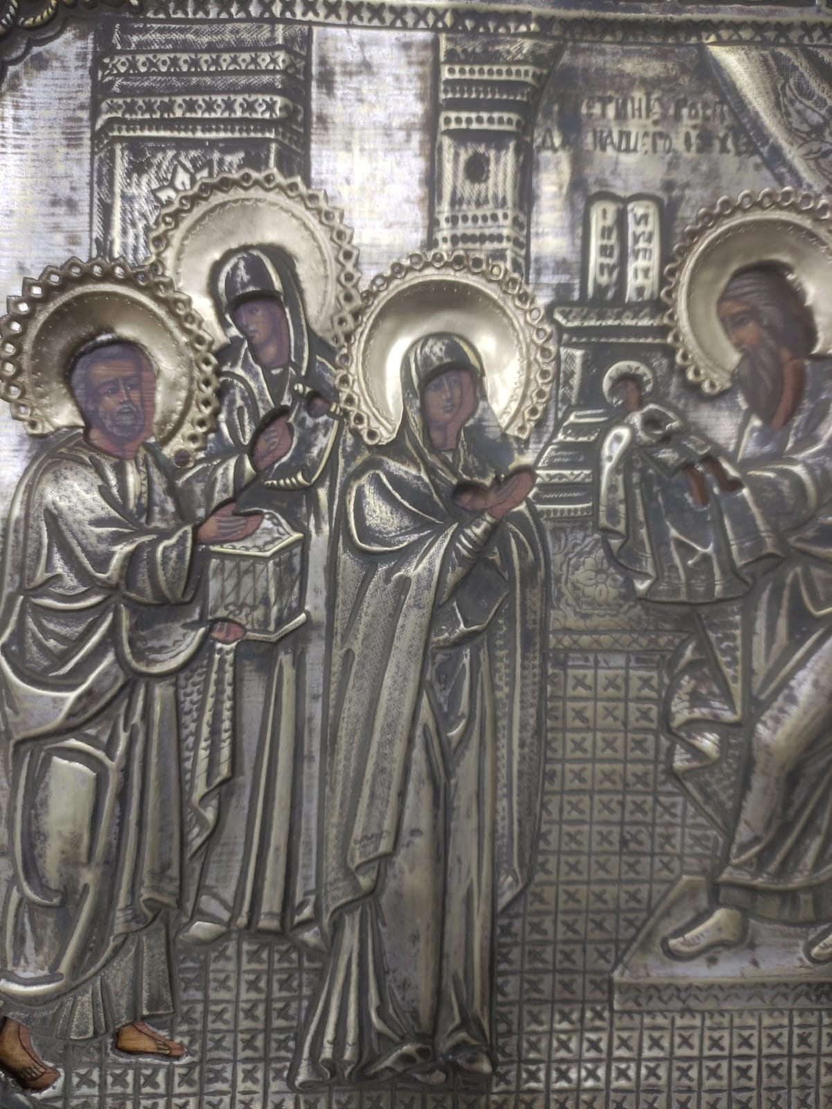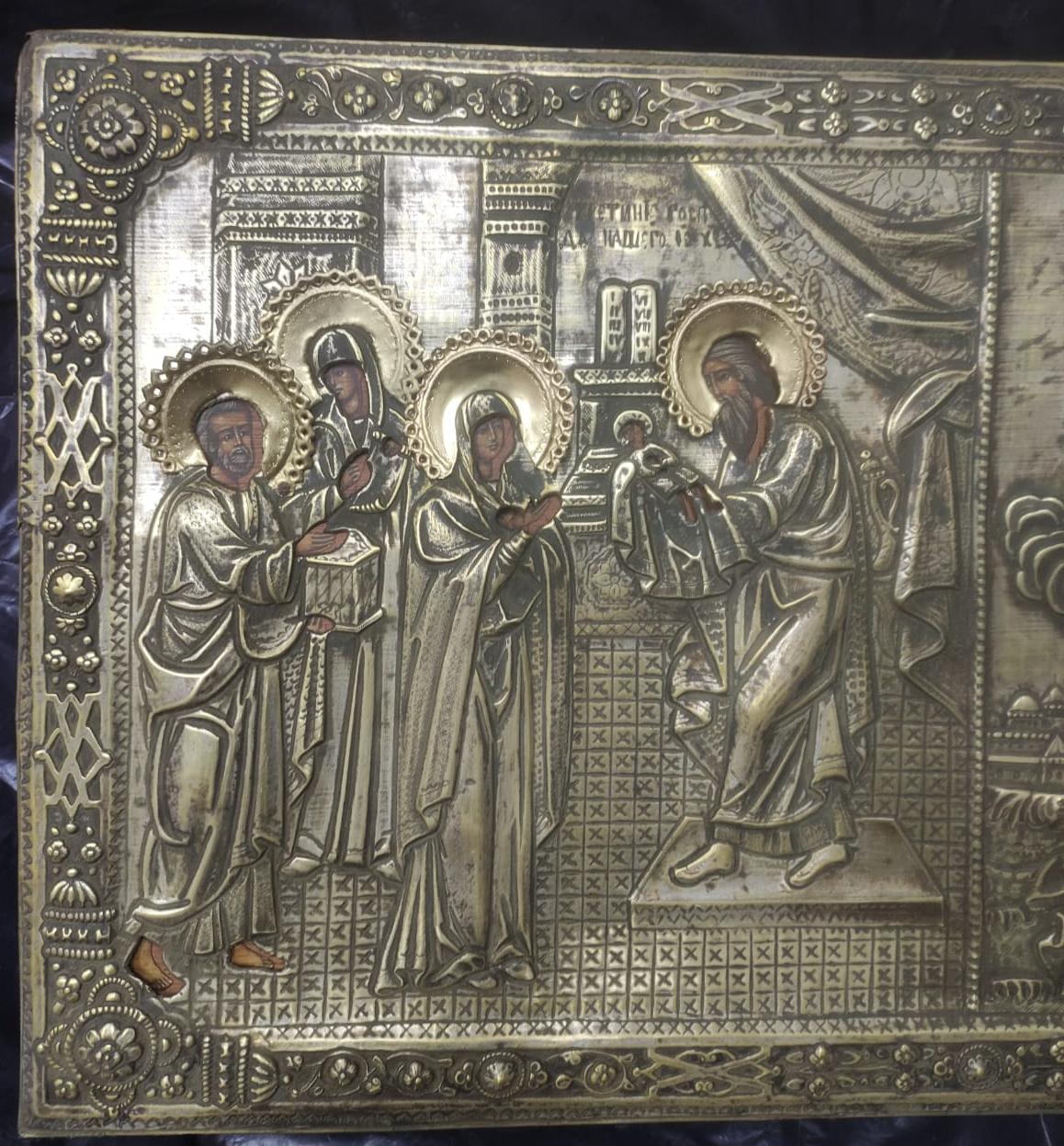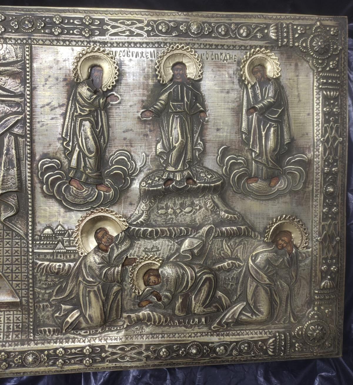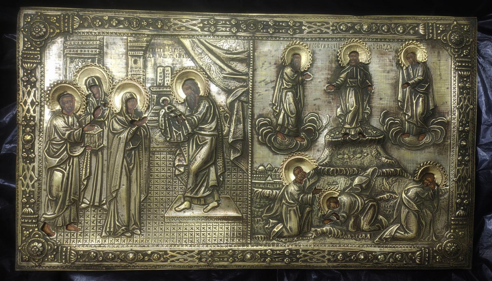Икона двухчастная, Сретение и Преображение в окладе
