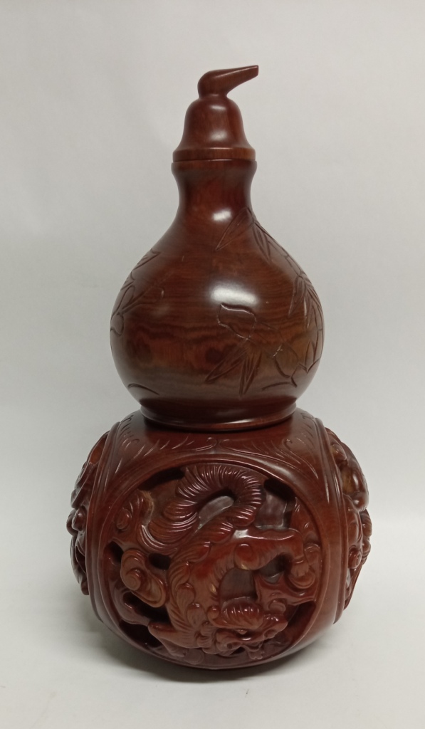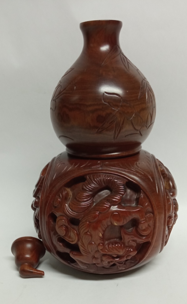 Коллекционная ВАЗА с ДРАКОНАМИ из китайского самшита