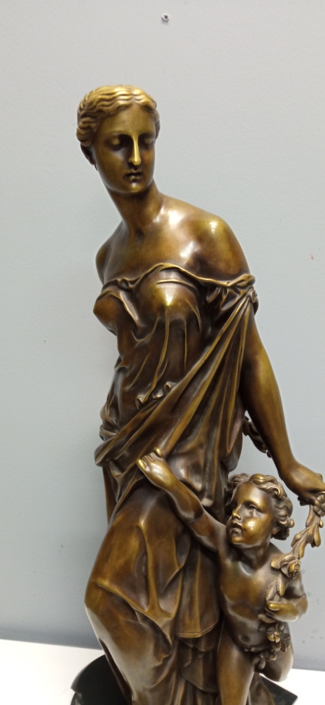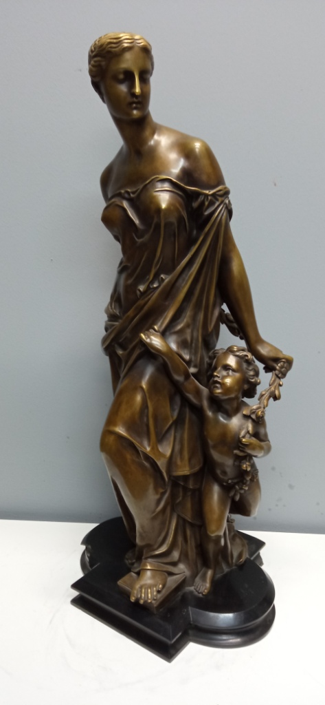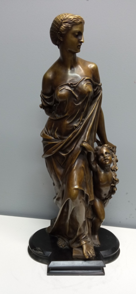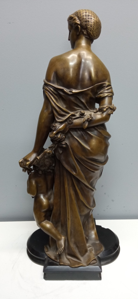 БОЛЬШАЯ Бронзовая скульптура ФЛОРА с ПУТТИ Франция 19 в