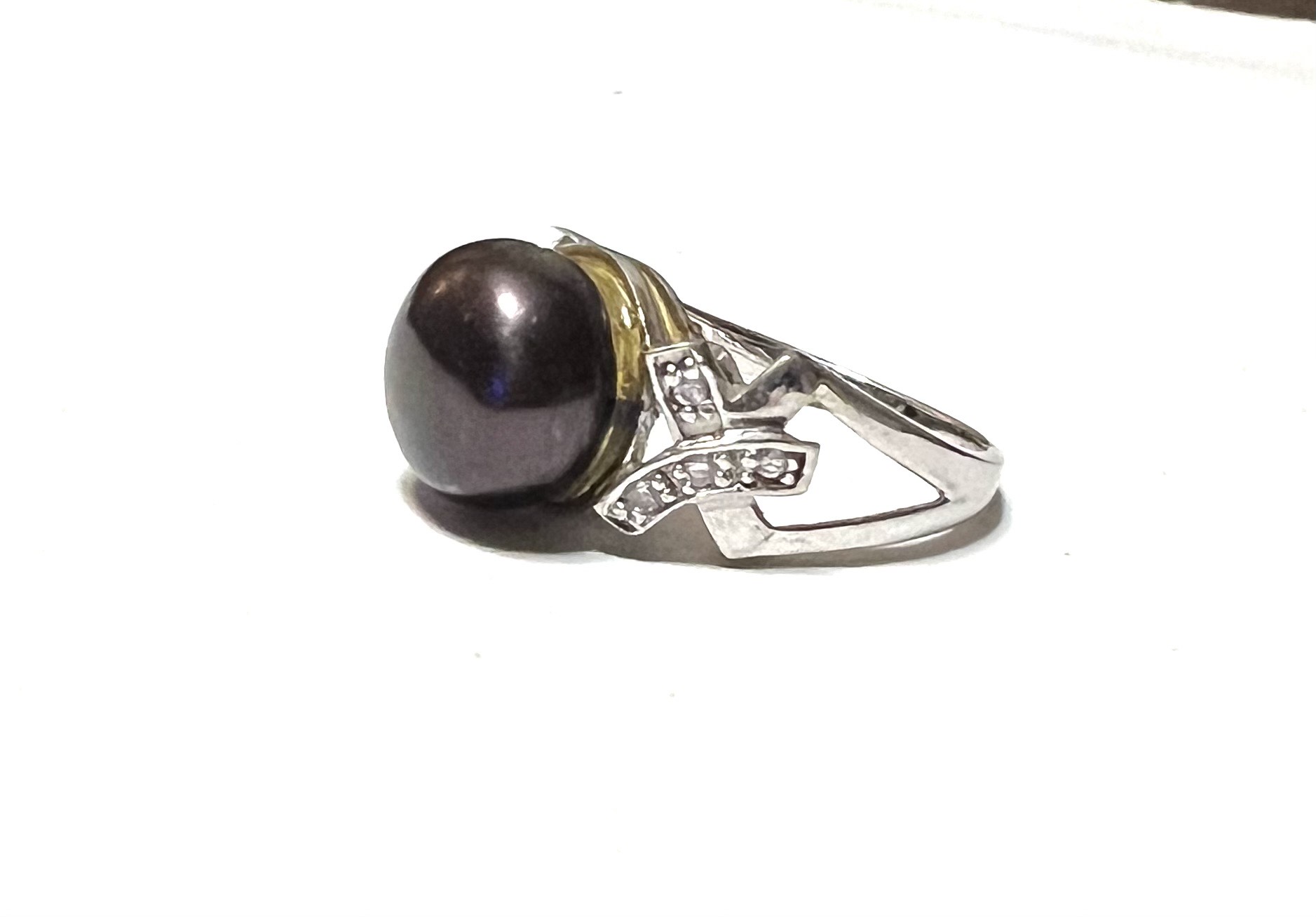 Роскошное серебряное кольцо с черным жемчугом