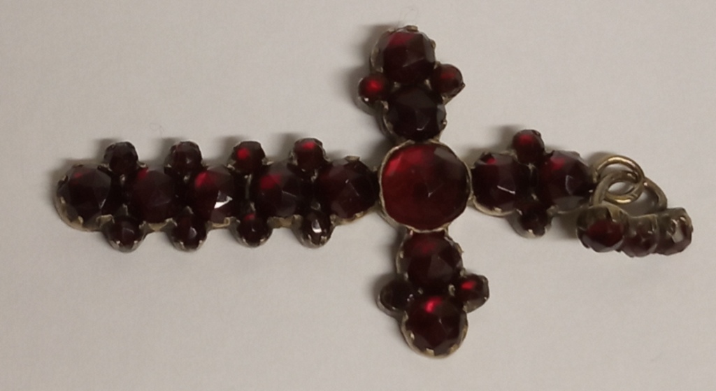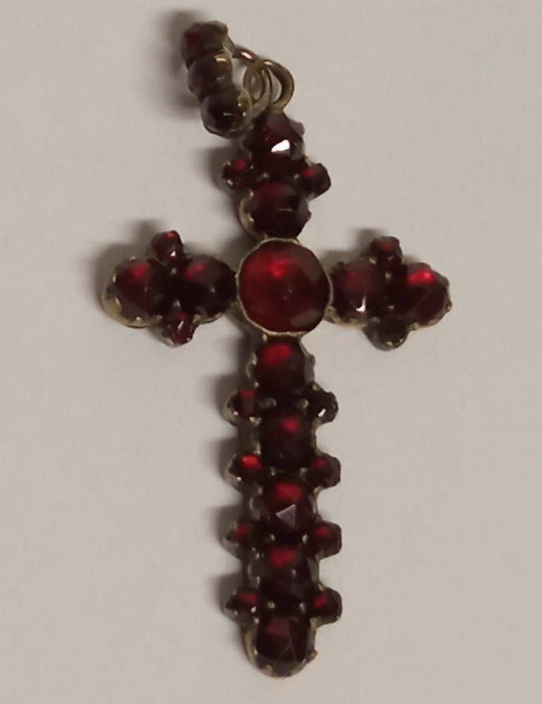 Серебряный крестик с гранатами