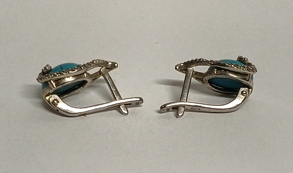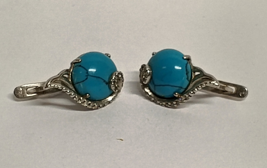 Серьги с бирюзой серебро 925 Россия