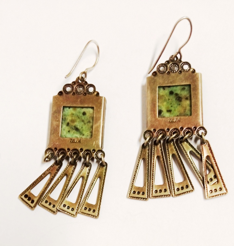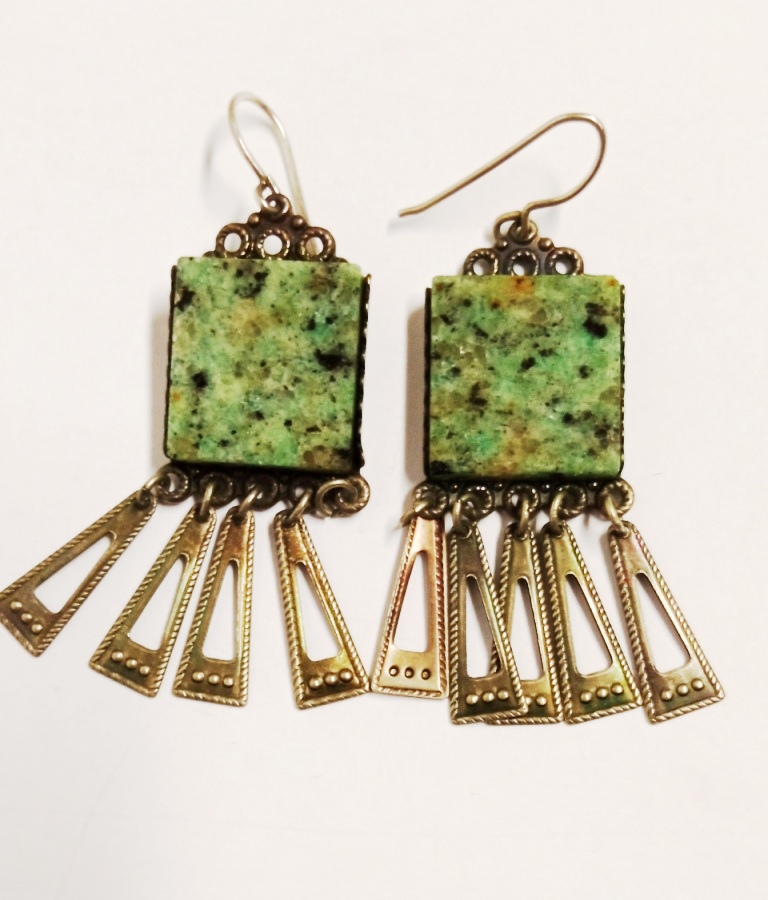Серьги с подвесками из жадеита в нейзильбере