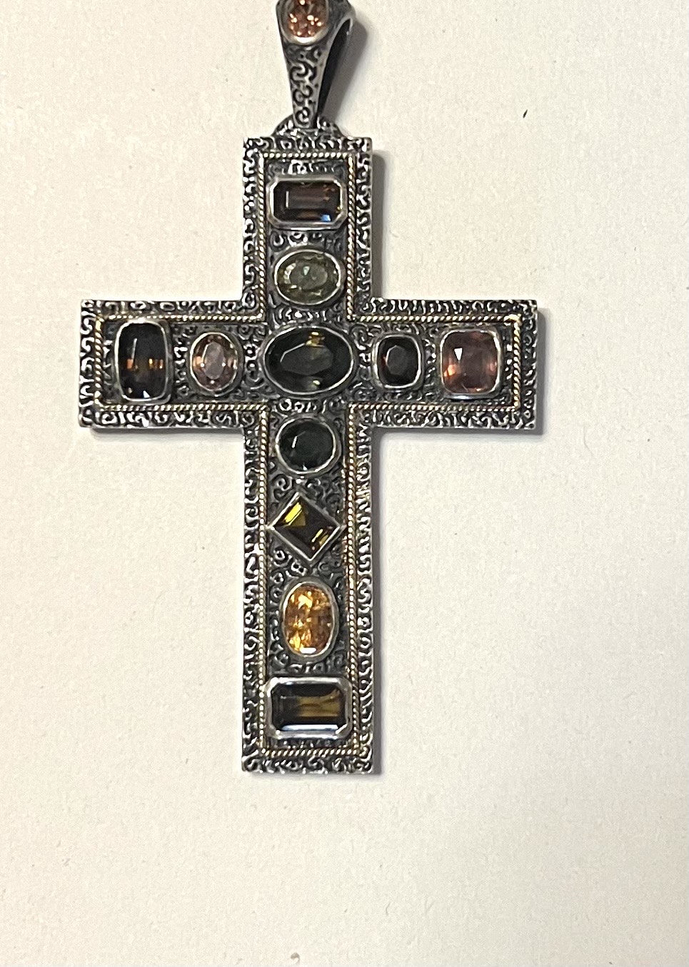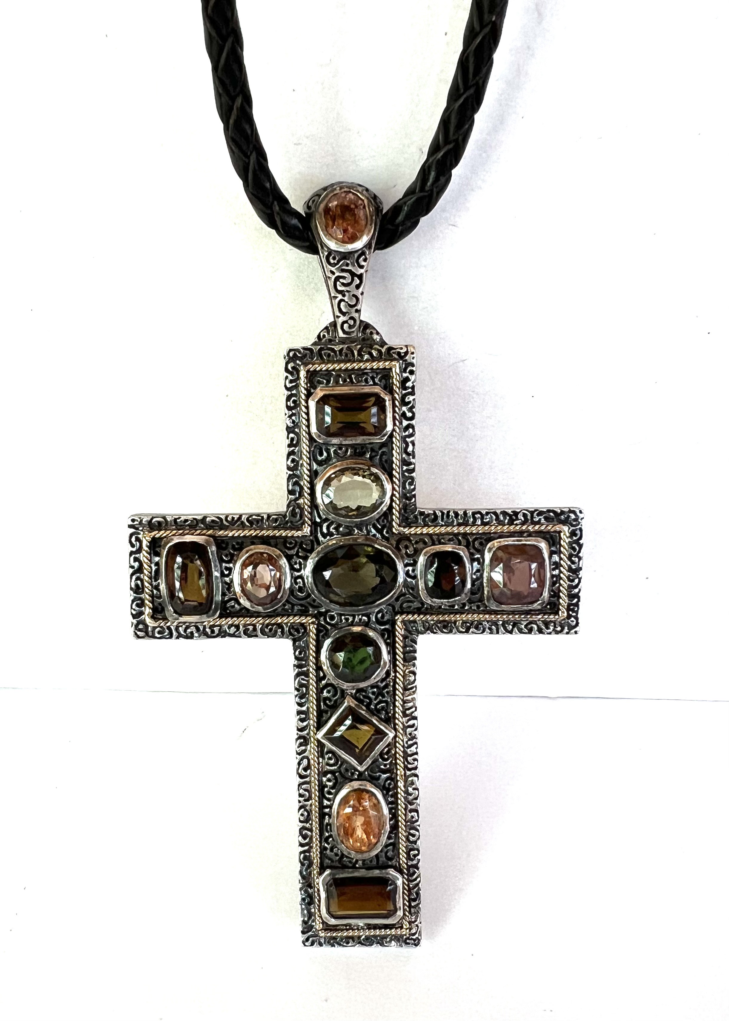 Крупный серебряный крест с турмалинами