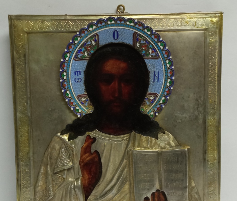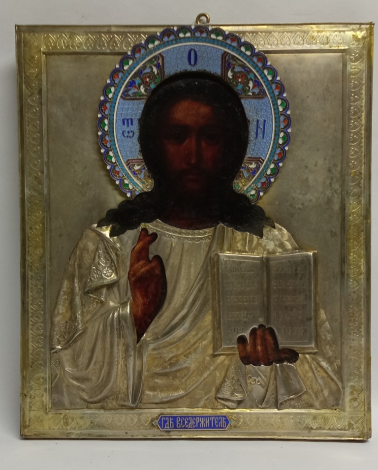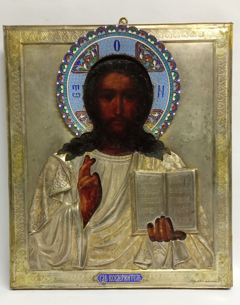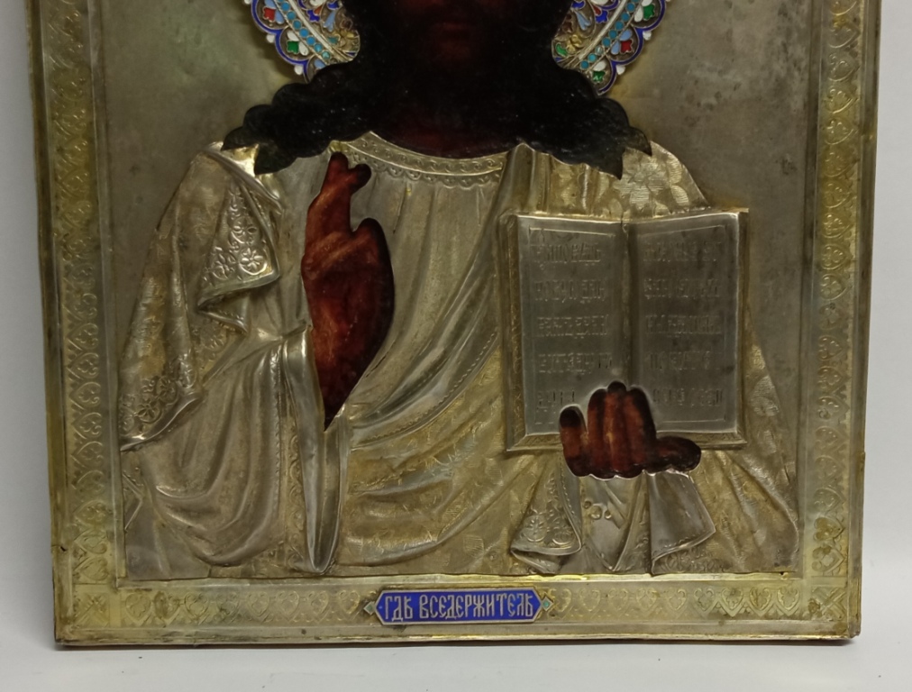 Икона СПАС вседержитель серебро 84 эмали Россия 19 век