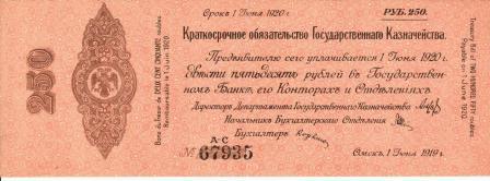 Бона 250 рублей Колчак 1919 г