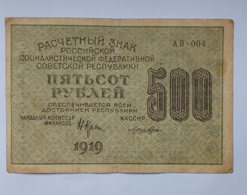 Бона 500 рублей 1918 Пятаков-Титов Серия АА-071 СССР