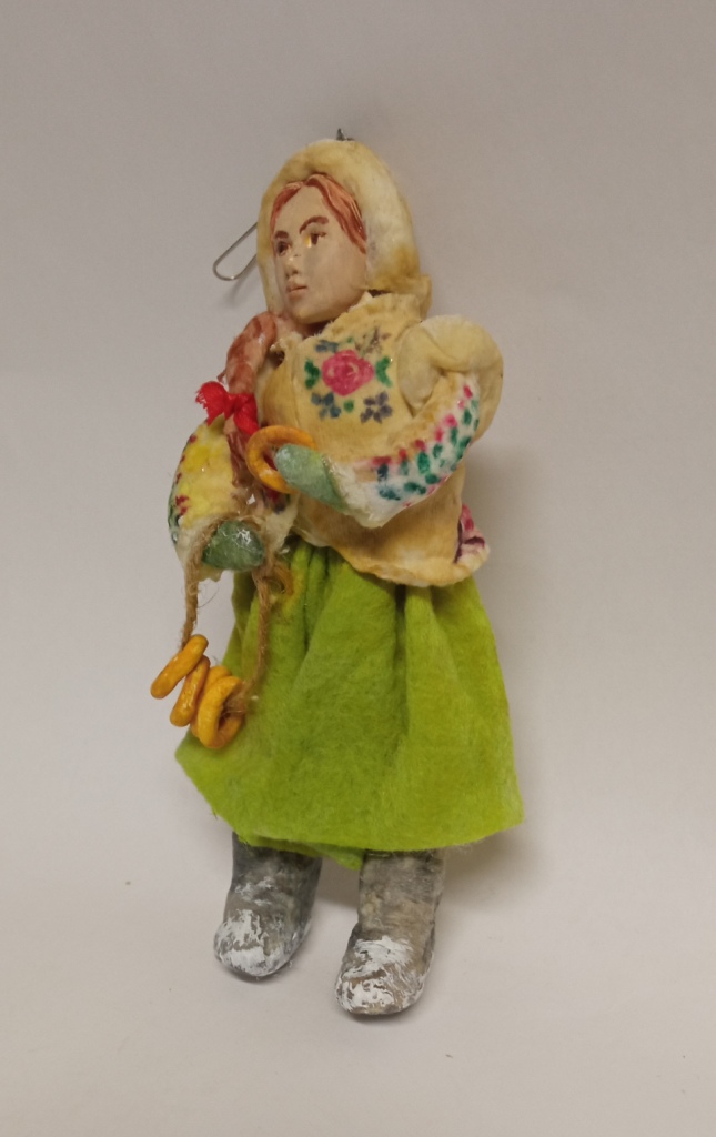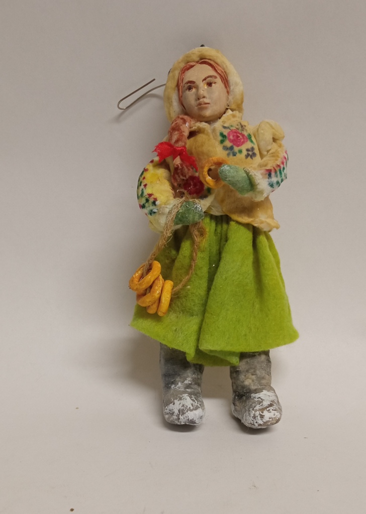 Елочная игрушка Барышня с баранками ватная