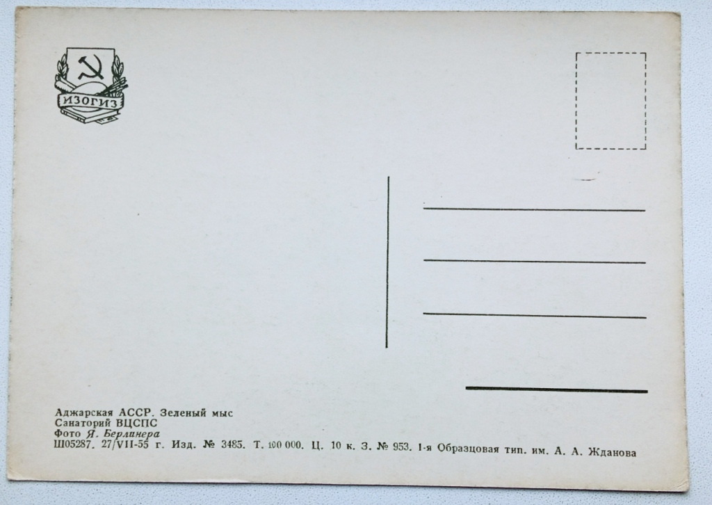 Открытка СССР 1955 год Зеленый мыс. Санаторий ВЦСПС