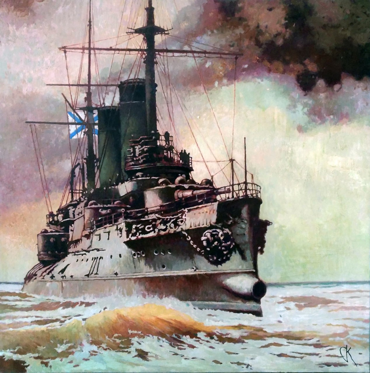 Картина "БРОНЕНОСНЫЙ ЭСМИНЕЦ «ЦЕСАРЕВИЧ», 1916". 2016 год." С. Крупп