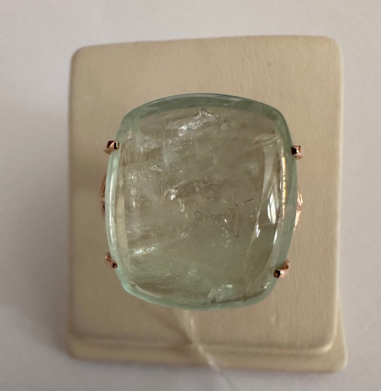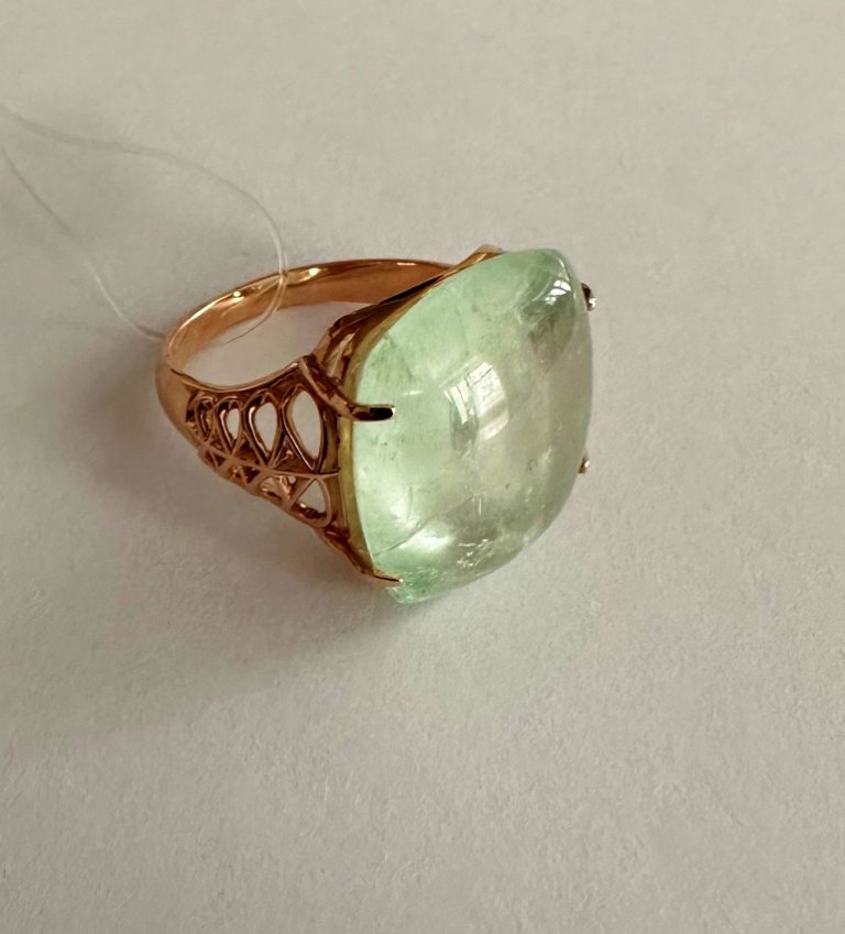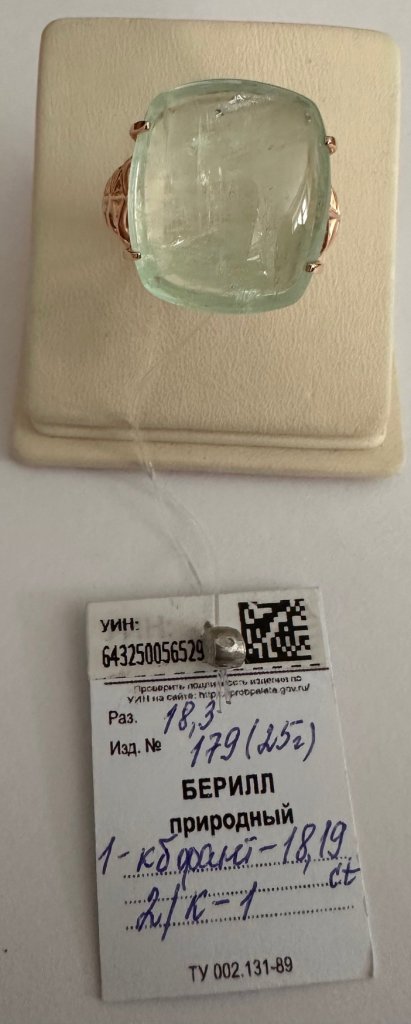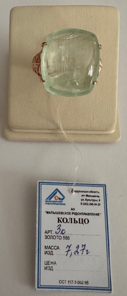 Кольцо украшает большой природный уральский берилл весом 18,19 карата
